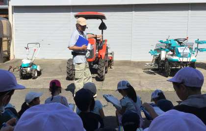 13日(水)に校外学習へ行きました。地域の米農家さんから米作りや農業機械についてのお話を聞き、学んだことを一生懸命メモにまとめました。