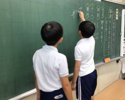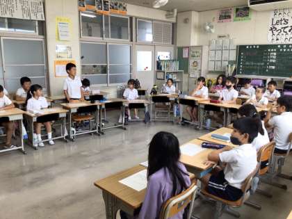 国語科「学校についてしょうかいすることを考えよう」では、各クラス、それぞれの議題について、司会、記録、提案などの役割をもち学級で話し合いを行いました。3つの役割以外の人も、議題について深めようとたくさん質問する姿が見られました。それぞれの役割の難しさを実感しながらも、「またみんなで話し合いしてみたい!」と、前向きな姿がありました。これからの話し合いでは、学んだことをいかして、たくさんの意見が飛び交うといいですね。