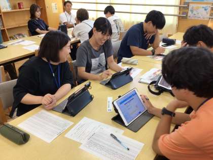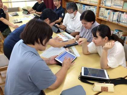 昨日下校後に、ICT研修を行いました。市の研修を受講した教員による伝達講習で、今回は、学習用タブレットのスカイメニューの「気づきメモ」というアプリについて、学び合いました。6年生の社会科の授業を想定し、江戸時代と明治時代の様子の絵を見比べて気づいたことをメモし、グループ内で気づきを共有していく方法を、実際に操作しながら学びました。