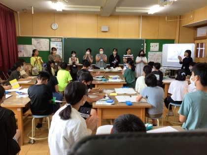6年生の家庭科のミシンの授業で、9日間にわたって最大9名の方々がボランティアとしてサポートしてくださっています。今日の授業でも、子どもたちがヘルプの旗をあげると、丁寧に教えてくださっていました。教員だけではなかなか目の届かない細かい部分をサポートしていただけて、本当に助かっています。子どもたちも困ったときにすぐ丁寧に教えていただけるので、自然と笑顔になっていました。2時間続きの授業のため、休み時間は地域支援室でお茶を飲みながら、とても和気あいあいとした雰囲気で談笑されていました。前山小学校はこうした様々なボランティアの皆様に教員も子どもたちも支えられています。