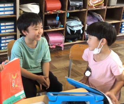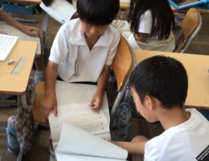 国語「うれしくなることばをあつめよう」では、グループに分かれて発表会をしました。言われて嬉しかった言葉について友達の発表を聞いたり、質問したりしながら話を盛り上げる工夫について考えました。どのグループも友達の話を一生懸命聞くことができました。