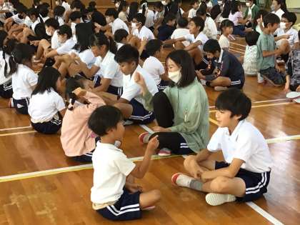 25日に1年生とフレンドリータイムを行いました。「折り紙遊び」をしてから1週間ぶりの再会にとても嬉しそうでした。「あっち向いてホイ」「じゃんけん開脚」「じゃんけん列車」で遊びました。休み時間に1年生と遊んでいる子もいるという嬉しい報告も受けています!