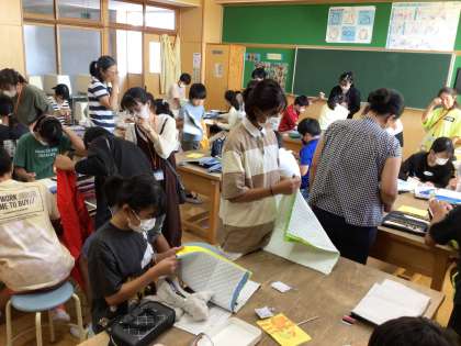修学旅行に持って行くナップサック作りも終盤に差し掛かってきました!ボランティアさん方にサポートしていただいています。完成目指してもう一息!頑張りましょう!
