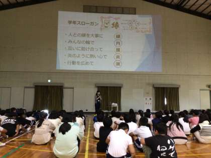 10日(火)に後期始業式と学年集会を行いました。学年集会では始めに前期の学級委員から、前期に成長したことと後期頑張りたいことの発表がありました。学級のことに目を向けて、学級を良くするために動いてくれた前期の学級委員のみんなありがとう!
