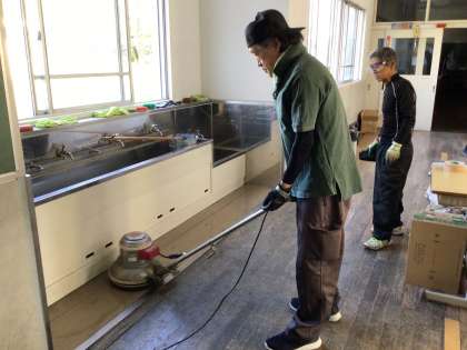 公務手の越智さんと校内整備員の岩崎さんが、手洗い場の床をきれいにしてくださいました。ポリッシャーをかけ、ワックスをかけてくださったので、見違えるようにぴかぴかになりました。校内にはたくさんの手洗い場があるので、トイレも含め順番にきれいにしてくださるとのことです。お二人には校内の整備だけでなく、草刈りや清掃などでも本当にお世話になっています。最近市内で草刈り機による事故が多発しており、それにより、学校でも草刈り機の使用にたくさんの制限がかかっています。この時期、手作業では追いつかないほど草が生えていますが、そちらも順番にきれいにしてくださっています。これからは落ち葉の掃除も加わりとても大変だと思いますが、いつも子どもたちや保護者の方が少しでも気持ちよく学校に来てもらえるようにと頑張ってくださっています。本当に頭が下がります。