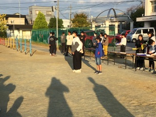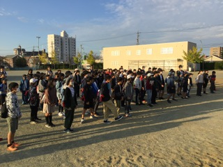 出発式の続きです。 見送りの保護者や先生たちにいってきますの挨拶をしました。