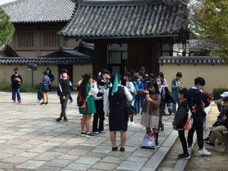 法隆寺の見学を終え、今から昼食会場に移動します。