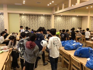 朝食会場にみんな集まってきました。