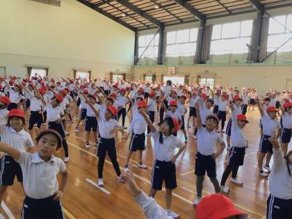 月曜日から運動会に向けて練習が始まりました。アップテンポで昨年度よりも難しい振りに不安そうな顔をしている子どもたちもいましたが、ワクワクしながら楽しそうに取り組む姿が見られました。休み時間にも、動画を見て自主練習するなど、積極的に取り組んでいました。