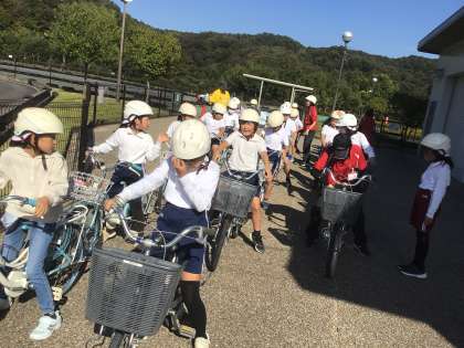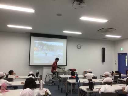24日(火)、25日(水)に豊田市交通安全学習センターに行って、自転車の乗り方について学びました。自転車の点検方法や発進確認などについて体験を通じて学んだり、大型車の傍や横断歩道の場面での危険予測を考えたりするなど、命を守るための大切なルールを学びました。