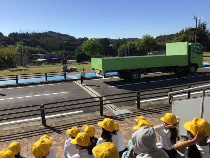 交通安全教室に行ってきました。シアターでの交通安全学習、道路への飛び出し実験、歩道の安全な歩き方実践を行いました。どれも一生懸命に取り組み、交通安全に対する意識を高めることができました。「横断歩道で待つときは一歩手前で」「横断歩道を渡るときは渡る前に右左を見る」これからも気を付けていきましょう!