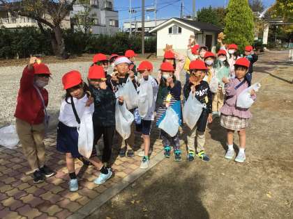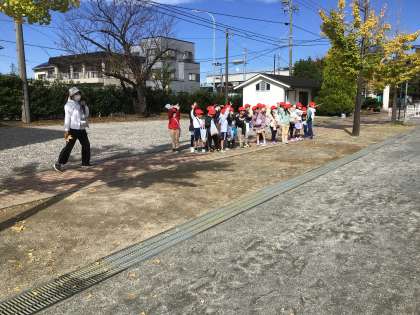 1年生がイチョウの葉やいろいろな葉を集めていました。運動場の横を通る時、整列してサポーターさんに元気な声で「ありがとうございます」とお礼を言っていました。