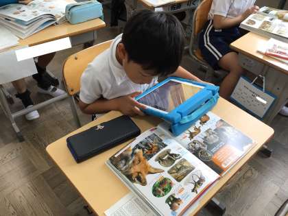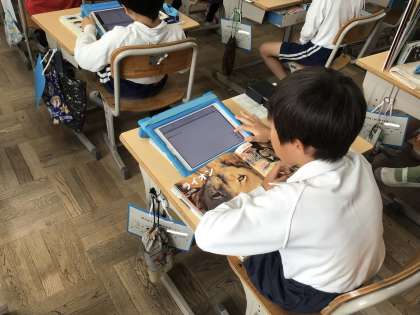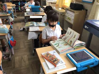 国語科「ビーバーの大工事」では、動物のひみつについて調べて発表する活動を行いました。子どもたちは、調べたい動物について本や図鑑を読み、動物のおもしろい行動や特徴についてまとめることができました。今まで知らなかった動物のひみつを見つけるたびに「知ってる?」と周りの友達に教えたり、一生懸命発表ノートに書き込んだりしていました。