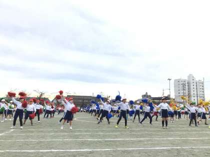 1、2年「おいでん踊り」「紅白花火(玉入れ)」