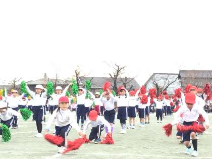 1、2年「おいでん踊り」「紅白花火(玉入れ)」