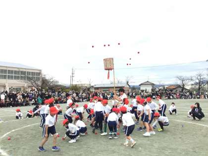 1、2年「おいでん踊り」「紅白花火(玉入れ)」