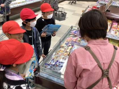 社会科の「店ではたらく人」の学習として、校区内にあるスーパーマーケットへ見学に行きました。