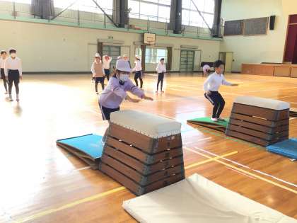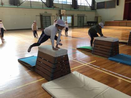 現在体育では、「とびばこ」を行っています。2年生の時よりもきれいに、また段を増やして挑戦してる姿が見られました。