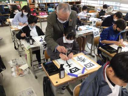 講師の先生に教えていただく書写指導の2回目がありました。書き初め大会に向けてたくさんアドバイスをいただき練習しました。冬休みの課題にも書き初め練習があります。たくさん練習して、字の美しさと集中力を身につけましょう。