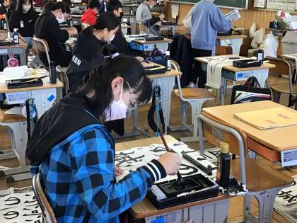 書き初め大会をおこないました。どの子も真剣な表情で取り組んでいました。来週は校内書き初め展を行います。ぜひご参観ください。