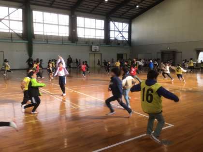 楽しい冬休みを終えて、1月がスタートしました。今日は学年集会を行い、転入生3名の紹介をしました。また、残り3か月をどのように過ごして3年生を迎えるかを考え、気持ちを新たにしました。お話の後には、バナナ鬼とペコットサルを行い、思い切り体を動かしました。