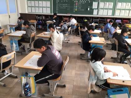 今日の国語と理科の学力検査では、みんな真剣に問題に答えていました。気がつけば今年度の登校日も50日ほどとなりました。明日は、算数の学力検査です。今まで習ってきたことが結果に表れることを期待しています。