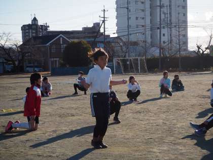 本日6時間目に5年生なわとびフェスティバルを行いました。風が強く縄を回すのも大変でしたが、一生懸命頑張る姿が見られました。個人跳びでは練習の成果を発揮するため、得意な2種目を選んで挑戦しました。8の字跳びでは体育の授業で練習してきたチームで協力し、チームやクラスのために頑張りました。最後には耐久跳びを行い、3人の児童が5分以上前回しとびを続けることができ、最後には大きな拍手が起こりました。