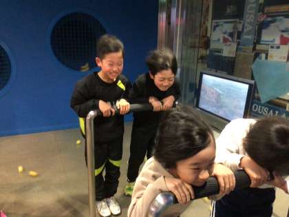 1月18日、24日に豊田市防災学習センターへ行きました。3年生は、社会科「くらしを守る」の学習をしています。火事からくらしを守る消防署の役割を知るとともに、命を救うための119通報についても学びました。