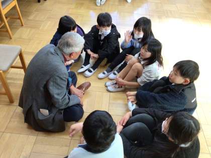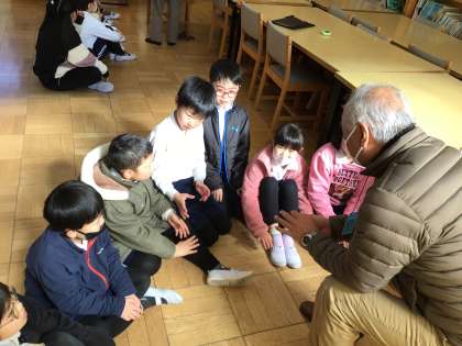 3年生では、昔から学区に住まわれている方々にお越しいただき、昔の小学校での過ごし方や家庭での生活についてお話を聞きました。