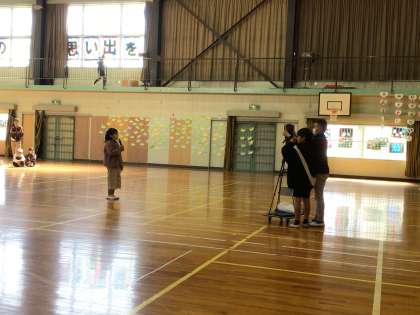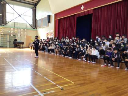 エンディングの様子です。5年生児童代表の言葉と、6年生のお礼の言葉、校長先生のお話です。