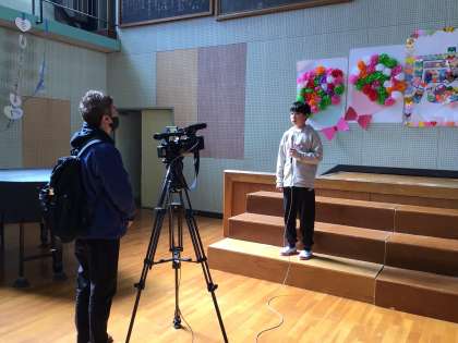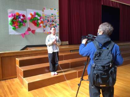 ひまわりネットワークの取材を受けています。最後に5年生が片付けをしてくれました。