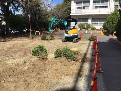 運動場が駐車場としてご利用いただけないため、卒業式と懇談会につきましては、保護者の方に駐車していただける場所を少しでも確保したいと思い、縁石や低木を撤去し、わずかですが駐車スペースを確保しました。ただ、敷地内には場所に限りがあるため、卒業式に関しましては、先日のアンケートでお車で来校と回答された方のみ、お子様が抽選した場所の駐車券をお渡しいたします。いろいろご不便をおかけしますが、ご理解のほど、よろしくお願いいたします。