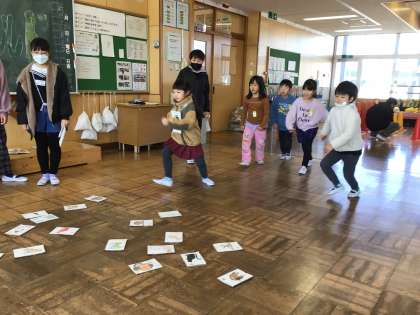 今日はそのお返しにと、6年生が『前山ドリームワールド』に招待してくれました。6年生の企画した遊びを順に回り、大盛り上がりでした。大好きな6年生と様々な遊びを楽しみ、大満足の時間を過ごしました。