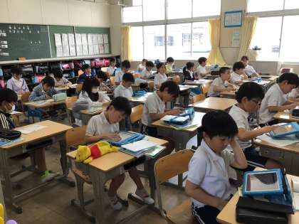 授業も本格始動しています。2年生の算数では、手をぴんぴんに挙げて発言していました。3年生は、書写の時間に使う作品をしまうケースを手作りしていました。3年生の別のクラスでは、タブレットで個別最適な学びをしていました。今年度導入したドリルプラネットは、理解度に合わせて自分のペースで学べるので、基礎学力の成長にもつながり、子どもたちの学習意欲も高まっています。子どもたちが楽しみながら学べる要素もあり、自動採点ですぐフィードバックされるので、苦手なところを知って何度も解き直すことができます。九九は苦手だけど漢字は得意な子、漢字は苦手だけど計算は得意な子、一人一人必要な学びは違います。今年度から、全員一斉に出していた宿題を自主学習という形に切り替えましたが、個々の習熟度に応じた学びができるとよいと思います。2年生以上は昨日からタブレットを持ち帰っていますので、ドリルプラネットについてもぜひ覗いてみてください。