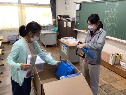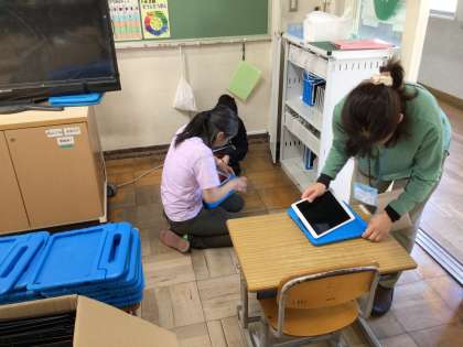 1年生の学習用タブレットのカバーを付ける作業を前小サポーターの皆さんが行ってくださいました。7名の方が手伝ってくださり、あっという間に作業が終了しました。担任が1人で学級分を付けるのはとても時間がかかるので、大変助かりました。ありがとうございました。