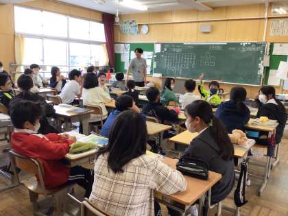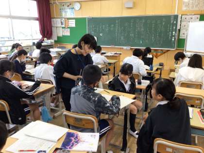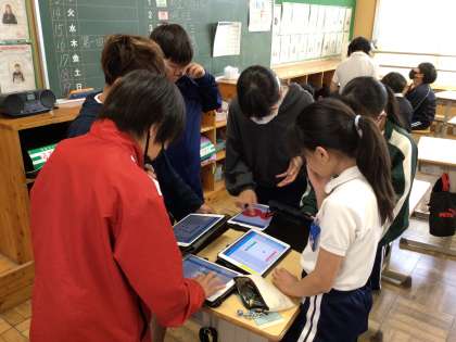 6年生は体育が雨でやれず、教室でタブレットを使ってグループごとに活動していました。他の教室でもいろいろな意見を出し合いながら、ある時は真剣に、ある時は楽しそうに授業に取り組んでいました。