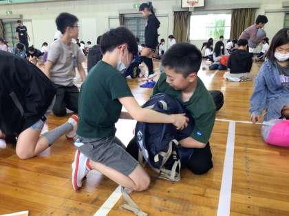 いよいよ明日からキャンプに出かけます。荷物チェックをしたり、寝袋のしまい方の確認をしたりしました。寝袋をしまう際には、自分のものだけでなく、班のメンバーの手助けをする姿が多く見られました。今日は早く寝て体調を整え、明日に備えましょう。