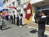 いよいよ出発です。ウルトラソウルを歌って、盛大に見送ってくれました!見上げると教室からも見送ってくれていました。