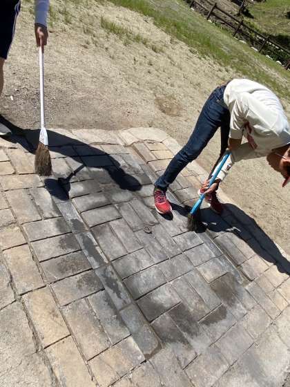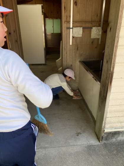 真剣に掃除をしています