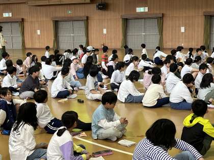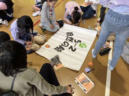 自分たちで見つけた素敵な姿を、花の形をした紙に書いて、学級訓の周りに貼っていきます。