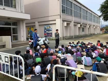 5月22日の水曜日に豊田警察署から警察官の方が来られ、自転車の乗り方、安全に気をつけるために意識することについてお話をしてくださいました。本物の白バイを前にして、子どもたちも先生たちも興味津々でした。これからも交通安全に気をつけて、これからの日々を過ごしたいと思います。
