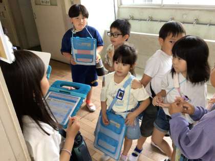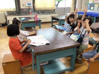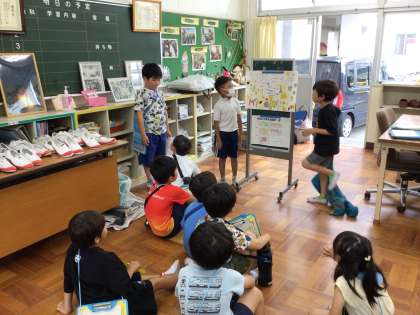いよいよ学校探検の本番になりました。リハーサルも行ってきた2年生は準備もばっちりです。どこに行っても、上手に1年生にクイズを出したり説明をしたりしていました。