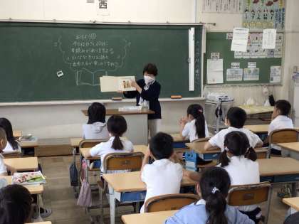 火曜日にいろえんぴつさんが本の読み聞かせをしてくださっています。子どもたちは目をきらきら輝かせてお話を聞いています。朝、教室に行くと「今日はいろえんぴつさん来てくれる日だよ」と嬉しそうに教えてくれる子がたくさんいます。