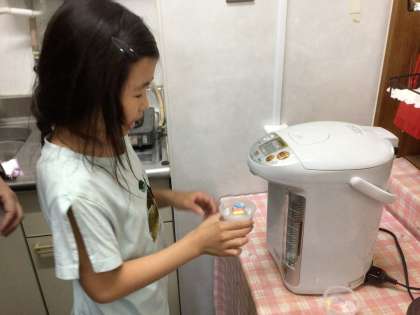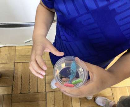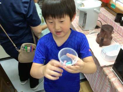 オアシスの子が不思議なカプセルを持って職員室に来ました。お湯を注ぐとカプセルがふくらみ始めて何かの形になりました。最終的に何の形になったのかとても気になります。
