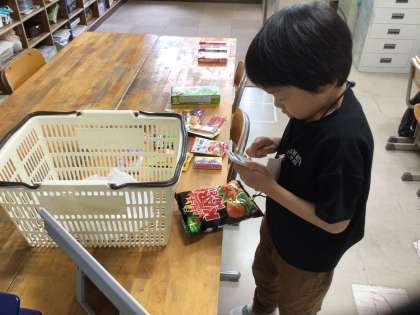 授業の様子です。オアシスさんは、フェルナで行う買い物学習のために、事前学習をしていました。より分かりやすいように実物を使い、計算機で金額の計算をしたりしていました。練習の成果が生かせるといいですね。