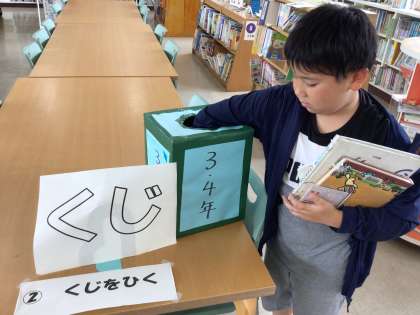 今回は、くじに書かれた条件の本を借りてポイントを貯めるという内容で、図書委員会の子どもたちが計画・運営を行いました。図書館まつりは、日頃、手に取る機会が少ない本を読んでみるきっかけになったと思います。図書館まつりは終わりましたが、子どもたちにはたくさんの種類の本と触れ合ってもらいたいです。