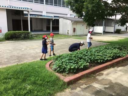 畑の野菜も随分育ってきました。暑い毎日ですが、夏野菜だけでなく、サツマイモも秋の収穫を楽しみにして、毎日お世話をしています。