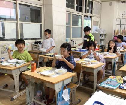 お昼の放送のクイズや音楽を聞きながら、毎日楽しく給食を食べています。