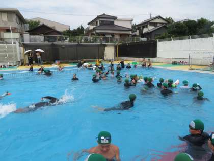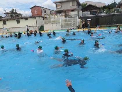 7月19日(金)に学級委員の司会・進行のもとプール納めを行いました。泳力測定では、めあて達成に向けてみんながんばって泳ぎました。また、水鉄砲を使って、的あてゲームを行いました。とても楽しそうでした.