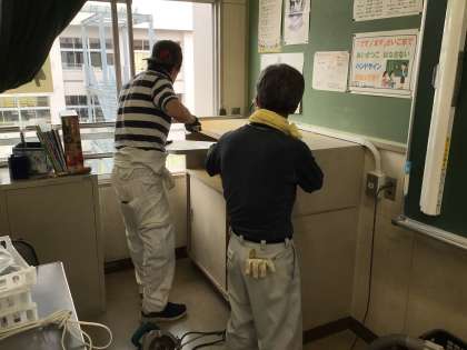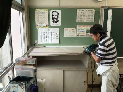 あと一週間で学校が始まります。子どもたちに会えると思うと、わくわくした気持ちになります。夏休み中に公務手の越智さんと校内支援員の岩崎さんが、さまざまなところの修繕をしてくださいました。夏休みがあけて子どもたちが学校に来た時に気持ちよく過ごしてもらいたいと、連日いろいろなところで作業してみえました。本当にありがたいです。